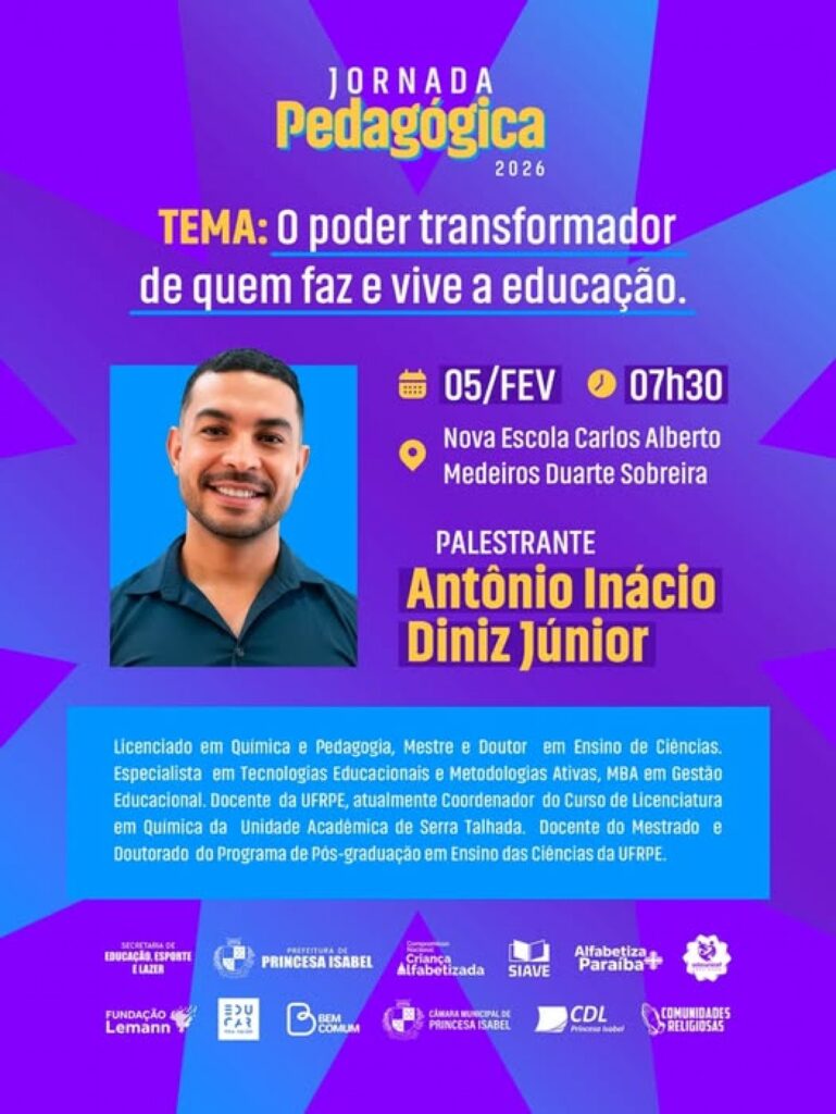 Cidades Educação Paraíba cidade, paraíba A Jornada Pedágogica 2026 A Jornada Pedágogica 2026 acontece na próxima quinta-feira, dia 05 de fevereiro!